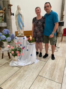 Et, nous avons fait connaissance avec Marylise et Patrick, récents associés à la Congrégation. Ils nous arrivent de Paris où ils ont connu les sœurs de la rue Bizot, à la paroisse. Ils ont proposé, dans le cadre de leurs congés, de mettre leurs compétences de Kinési, ostéopathie …au service des résidentes, sœurs ou laïques.
