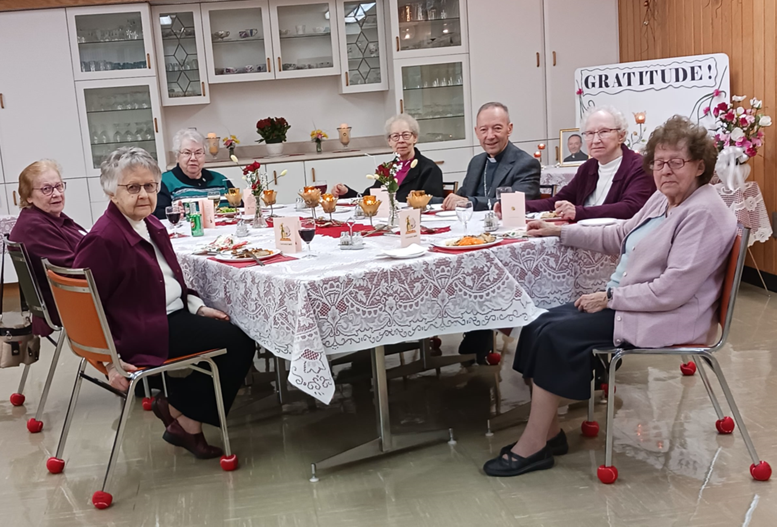 La bonne nouvelle à diffuser concerne notre évêque émérite, Mgr Gilles LEMAY qui nous a rendu visite à la fin d’avril. Le diocèse a célébré le 20ième anniversaire de son ordination épiscopale le soir du 1er mai au cours d’une Eucharistie festive à la Cathédrale d’Amos. Sr Gaby GUILLEMETTE, Sr Christiane GUILLET et moi y avons participé. Ce fut un beau témoignage d’affection des diocésains présents pour cette fête.