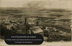 C’est dans ce contexte que le directeur de la Compagnie des mines de Marnes, qui aménage un hôpital destiné aux ouvriers d’Auchel (Pas-de-Calais), sollicite les Sœurs du Sacré Cœur de Coutances afin d’assister le docteur Hernu (1849-1920), dans les soins aux blessés. Il s’agit de la première implantation de la Congrégation dans un milieu industriel et ouvrier, dont elles vont découvrir la difficulté du travail minier et les malheurs.