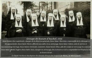 Toutefois, en 1954, le manque de personnel contraint la Congrégation à rappeler les sœurs de l’hôpital d’Auchel dans la Manche, « Ainsi, mes chères Sœurs, votre passage à Auchel aura été pour nous un grand bien ».