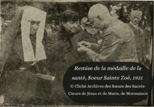 Après la guerre, la Compagnie minière reprend la gestion de l’hôpital et les sœurs reprennent également leurs missions auprès des blessés de la mine. En 1931, une nouvelle distinction vient saluer ces années d’engagement, par la remise de la médaille du travail à la Supérieure, Sœur Sainte Zoé.